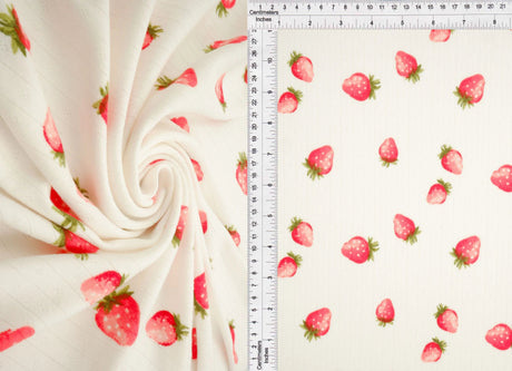 1 Yard 93% Polyester 7% Spandex Cotton-Style Pointelle Strawberry Print Fabric 58/60" Width