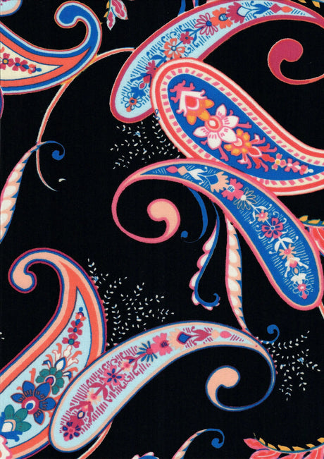 1 Yard Korean ITY Paisley Print Knit Fabric 200 GSM, 58/60'' Wide Polyester Spandex Blend