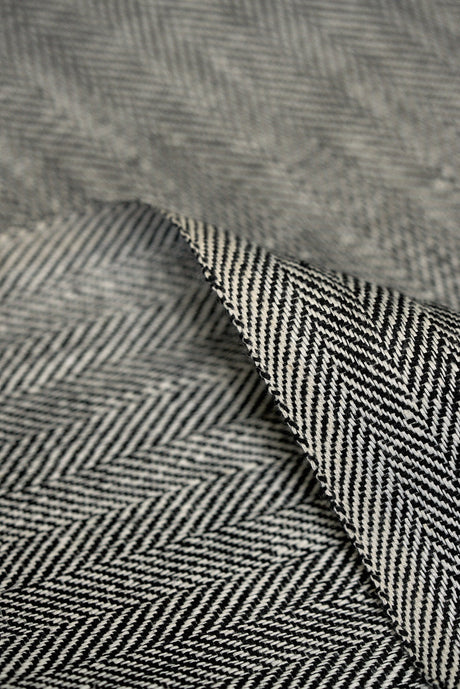1 Yard Linen Novelty Herringbone Yarn Dyed Fabric Charcoal Color 54" Width