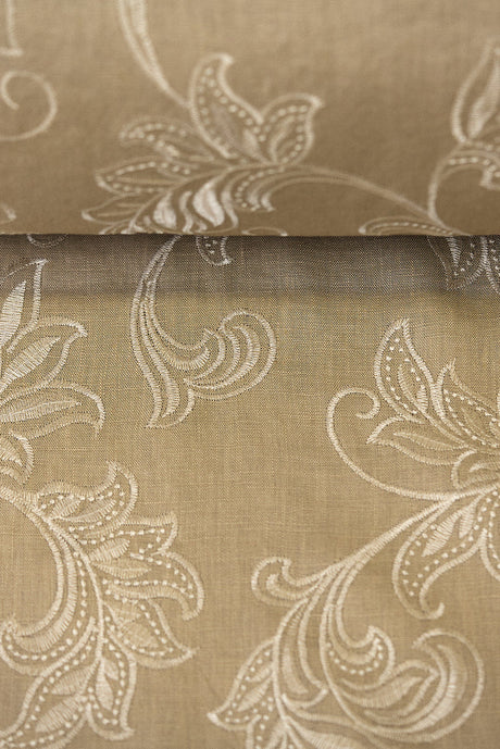 1 Yard Natural Ivory Pure Linen Foliage Embroidered Fabric Midweight Woven 54 Inch Width