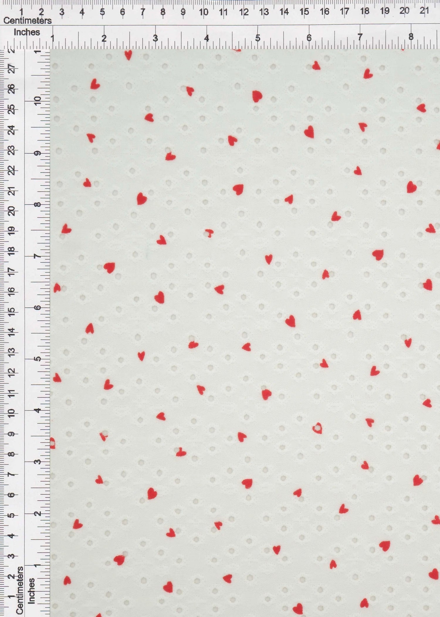 1 Yard Jacquard Eyelet Heart Knit Fabric 190 GSM, 58/60? Wide Polyester Spandex Blend Ivory/Red - IVORY/RED is backordered and will ship as soon as it is back in stock.