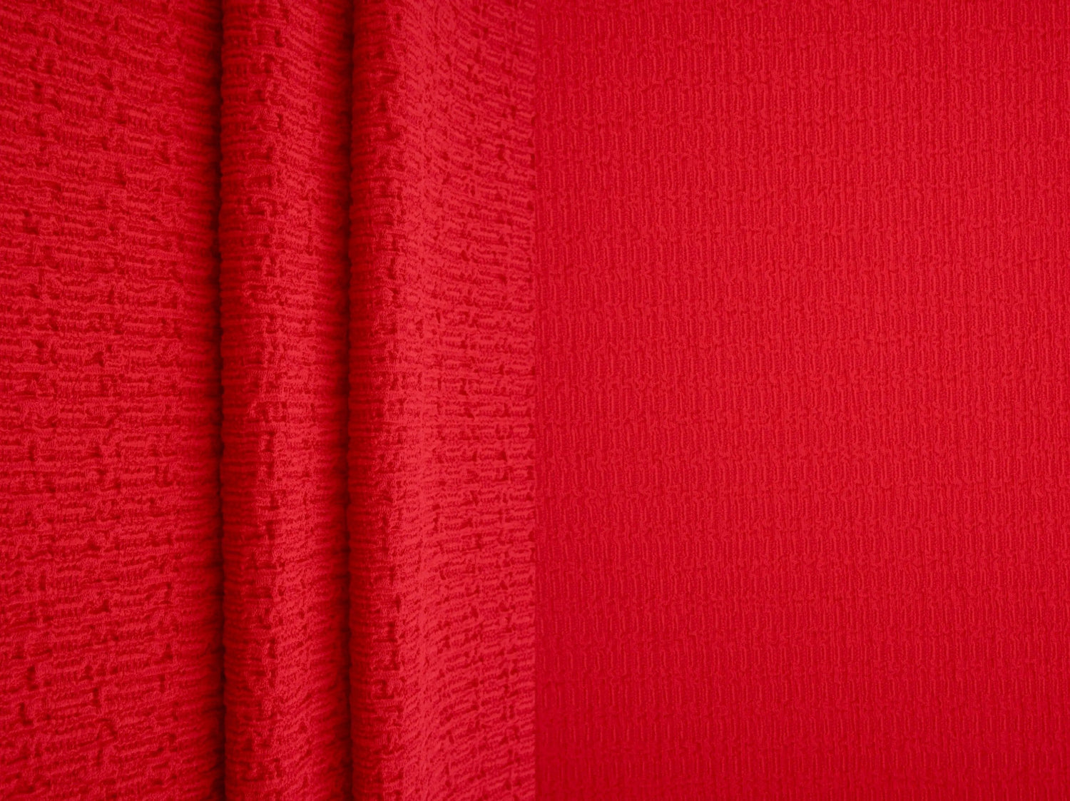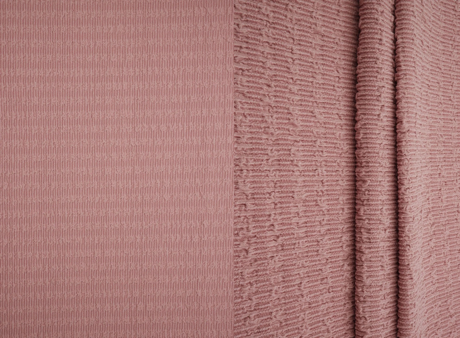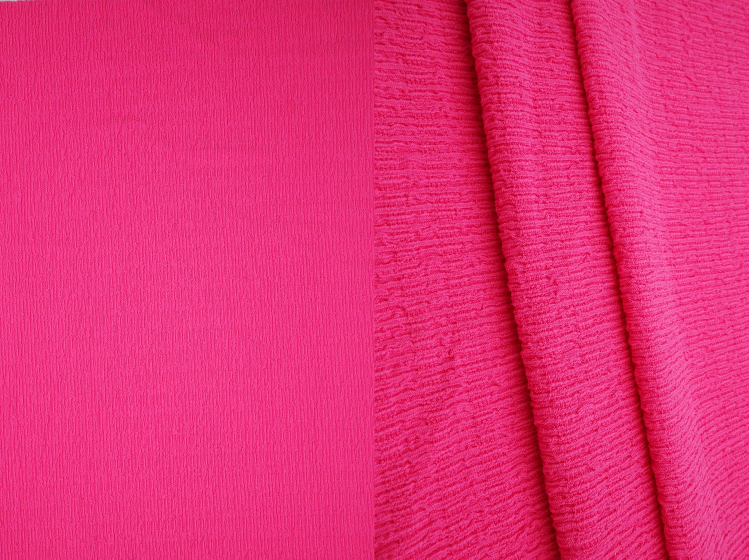 This textured bubble jersey crepe knit fabric offers a unique feel and beautiful drape for stylish apparel. Made of 95% polyester and 5% spandex, it’s a medium-heavy weight fabric at 220 GSM and 59 inches wide, with a soft hand and natural stretch. Perfect for trendy tops, blouses, dresses, skirts, and creative DIY sewing projects. Sold by the yard to suit custom requirements.