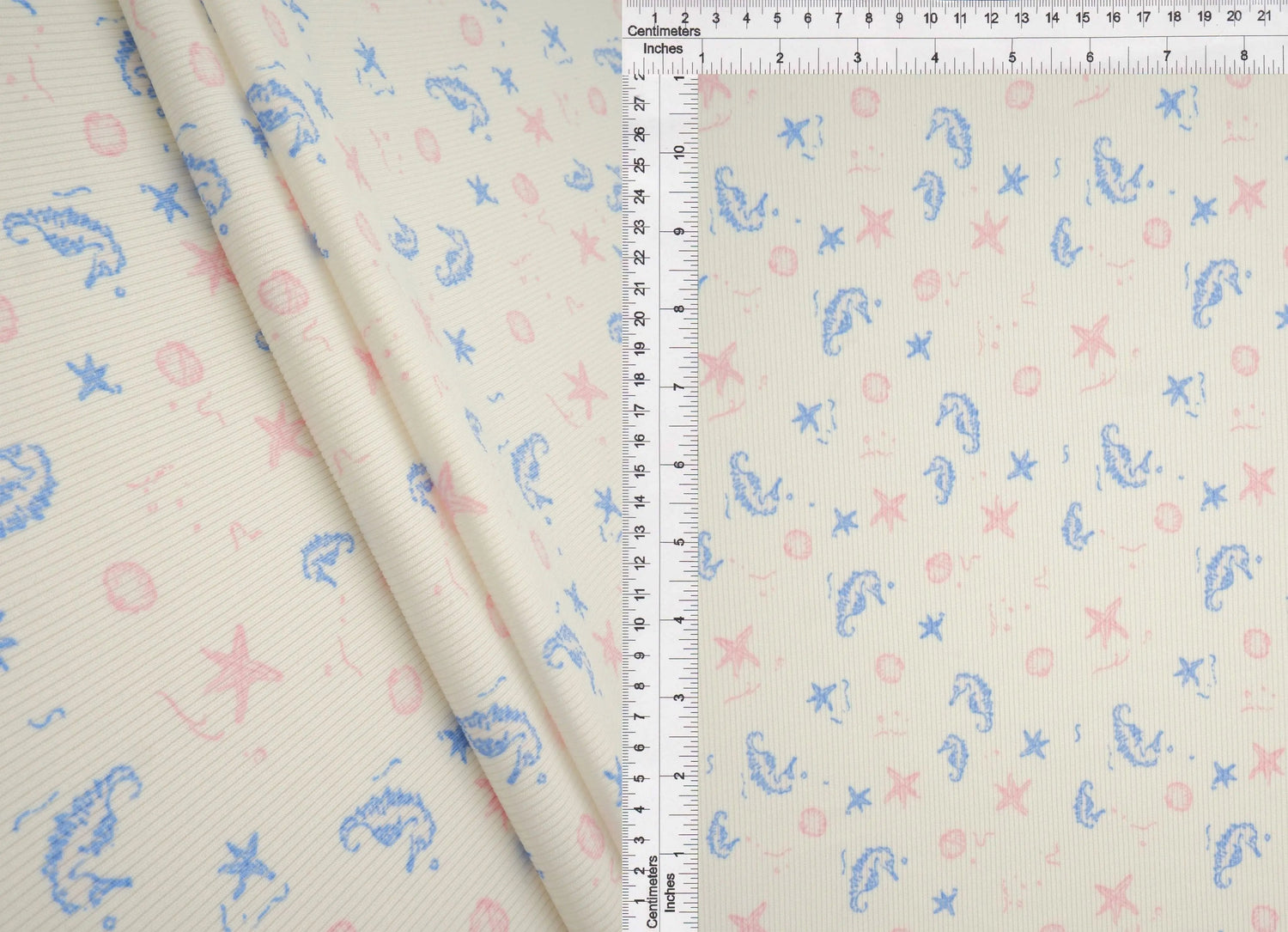 1 Yard Ocean Theme Cotton Feel Rib Knit Fabri 58/59 Inch Wide 2x2 Stretch Rib for Kidswear & DIY Sewing