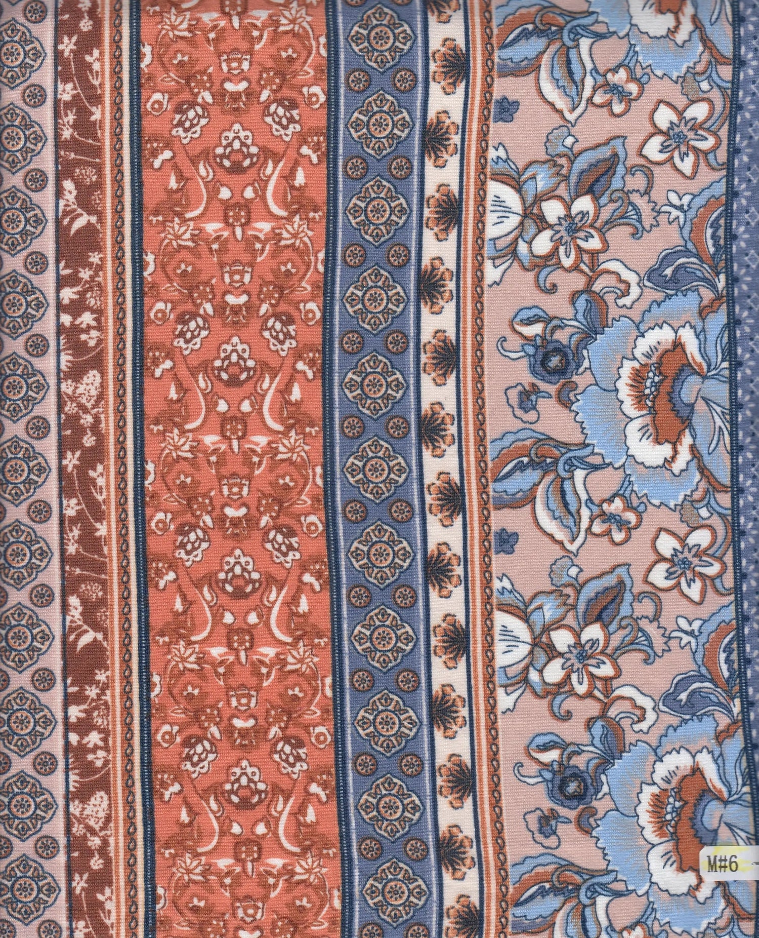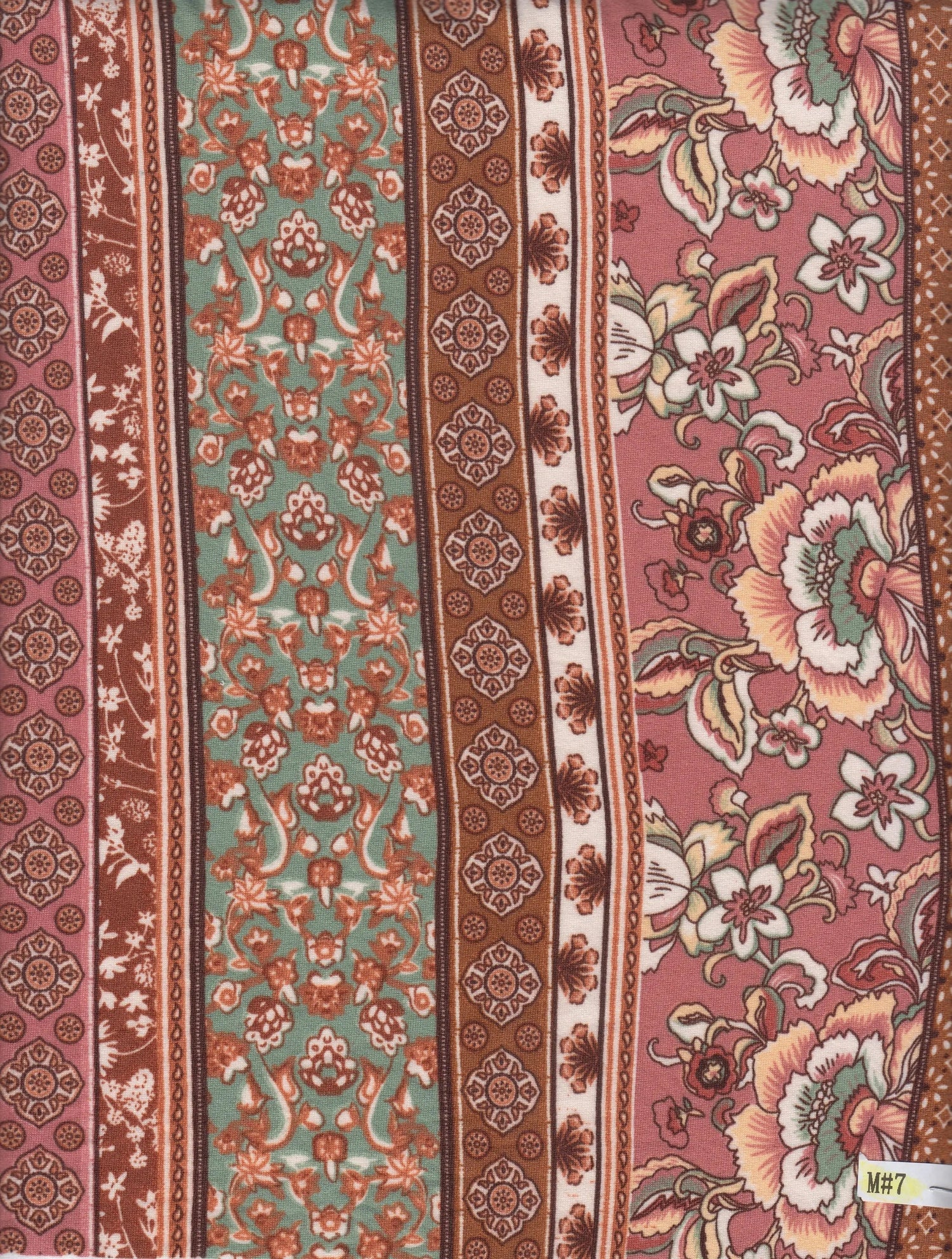 This lightweight Boho Stripe Brushed DTY Knit Fabric features a soft brushed finish with a trendy boho stripe print. Made from 96% polyester and 4% spandex, it offers excellent stretch and comfort, making it ideal for apparel such as dresses, tops, and casual wear. The fabric measures 58 to 60 inches wide and has a GSM of 170, providing a perfect balance of warmth and breathability. Sold by the yard, this fabric is perfect for your creative sewing projects.
