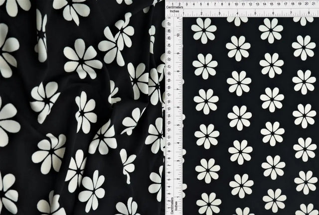 DTY Floral Print Fabric Polyester Spandex Stretch Knit Brushed 58/60 Inches - BLK/IVORY is backordered and will ship as soon as it is back in stock.