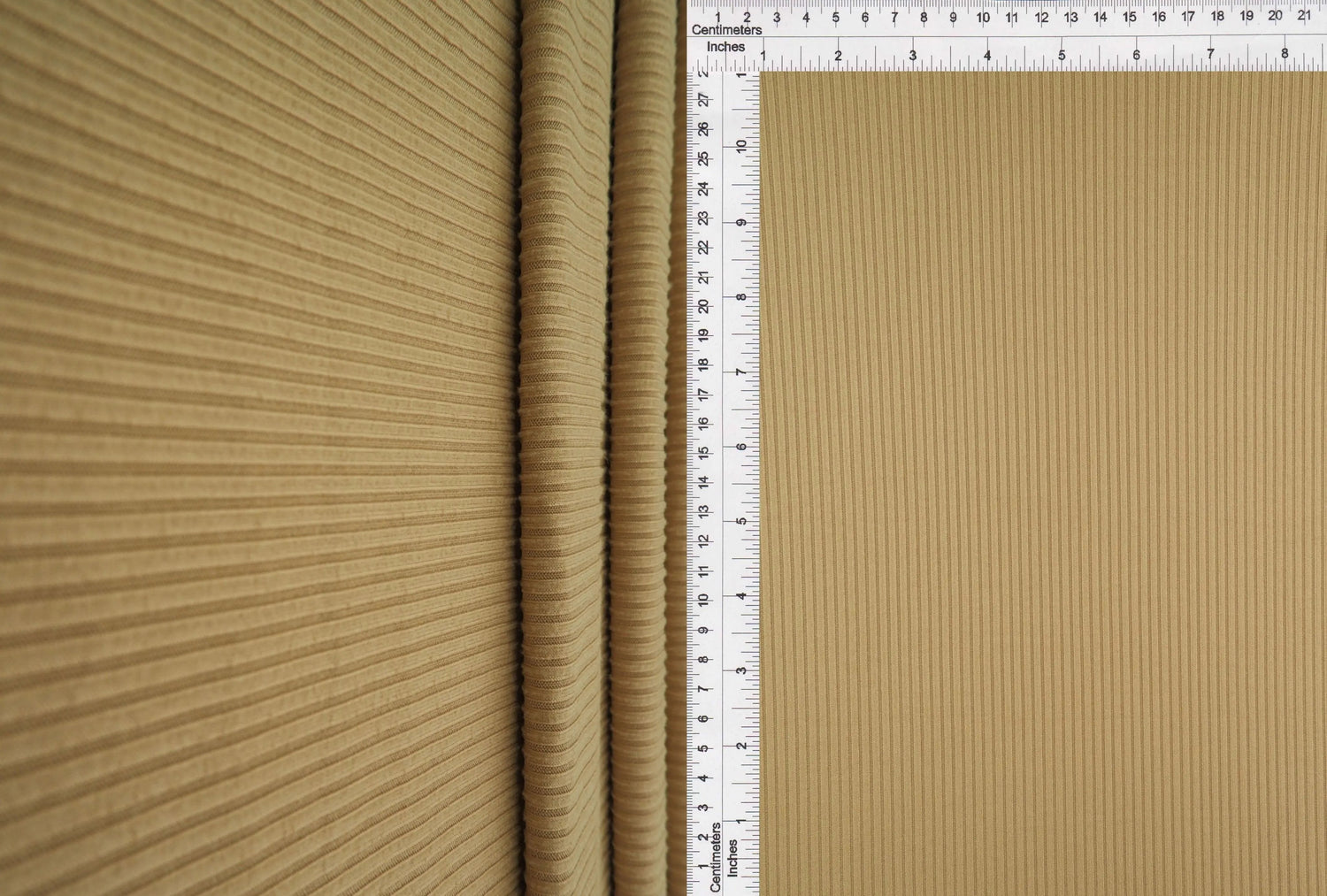This Yummy Rib 4x2 Solid Knit Fabric offers a soft, stretchy feel with a textured rib pattern. Made from 87% polyester and 13% spandex, it's perfect for fitted tops, dresses, and activewear. With 170 GSM and a 58/60" width, it delivers comfort, flexibility, and clean structure for everyday wear. Sold by the yard.