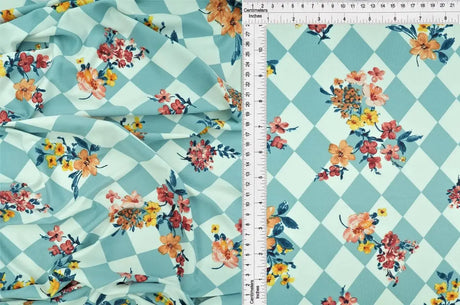 1 Yard DTY Argyle Floral Flower Print Stretch Knit Fabric 58/60 Inch Wide