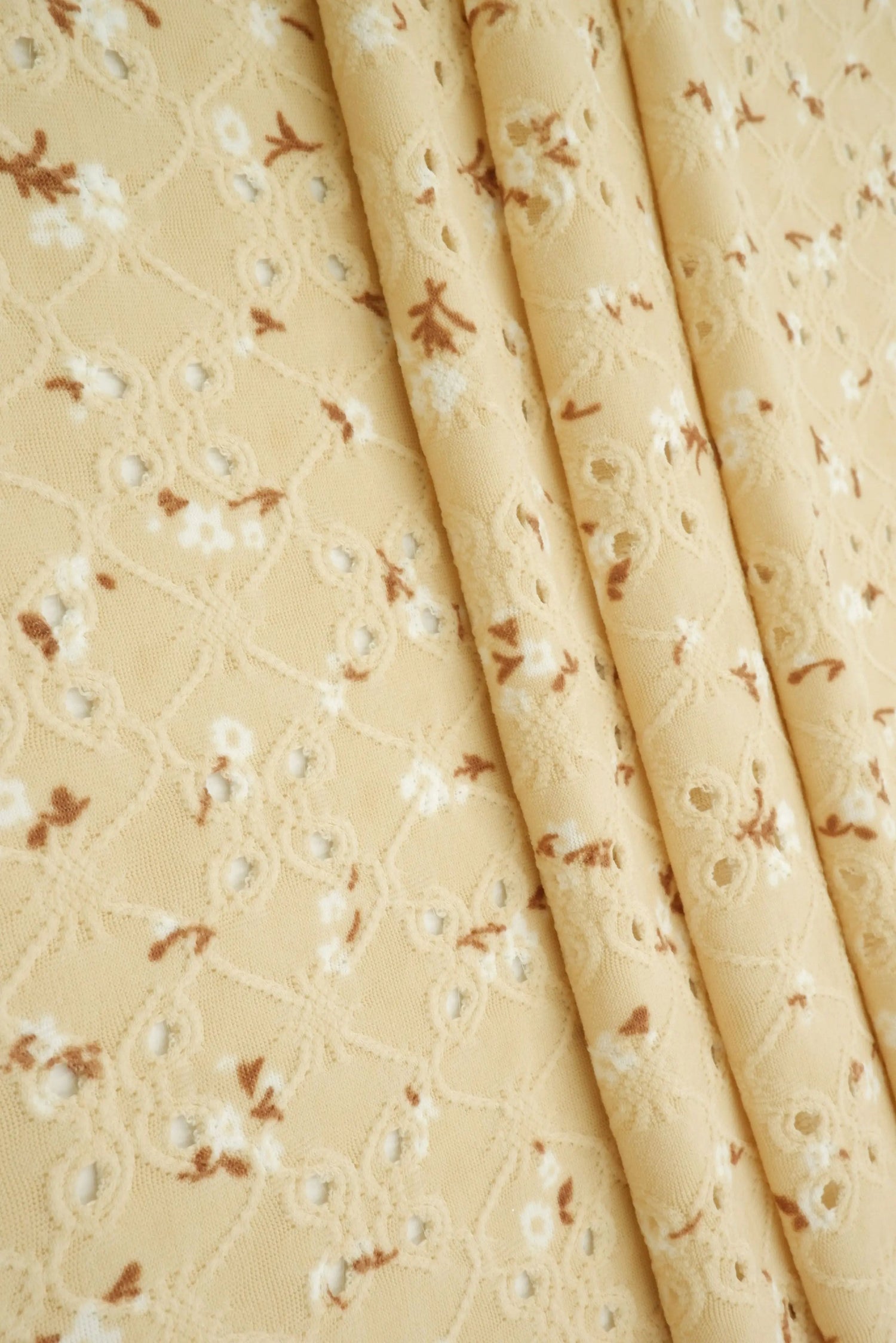 Eyelet Ditsy Floral Jacquard Knit Fabric DTY Stretch Polyester 58/60” Wide