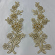 1 Pair Beaded & Corded Floral Lace Applique 10" x 2" Each Side - Gold Metallic is backordered and will ship as soon as it is back in stock.