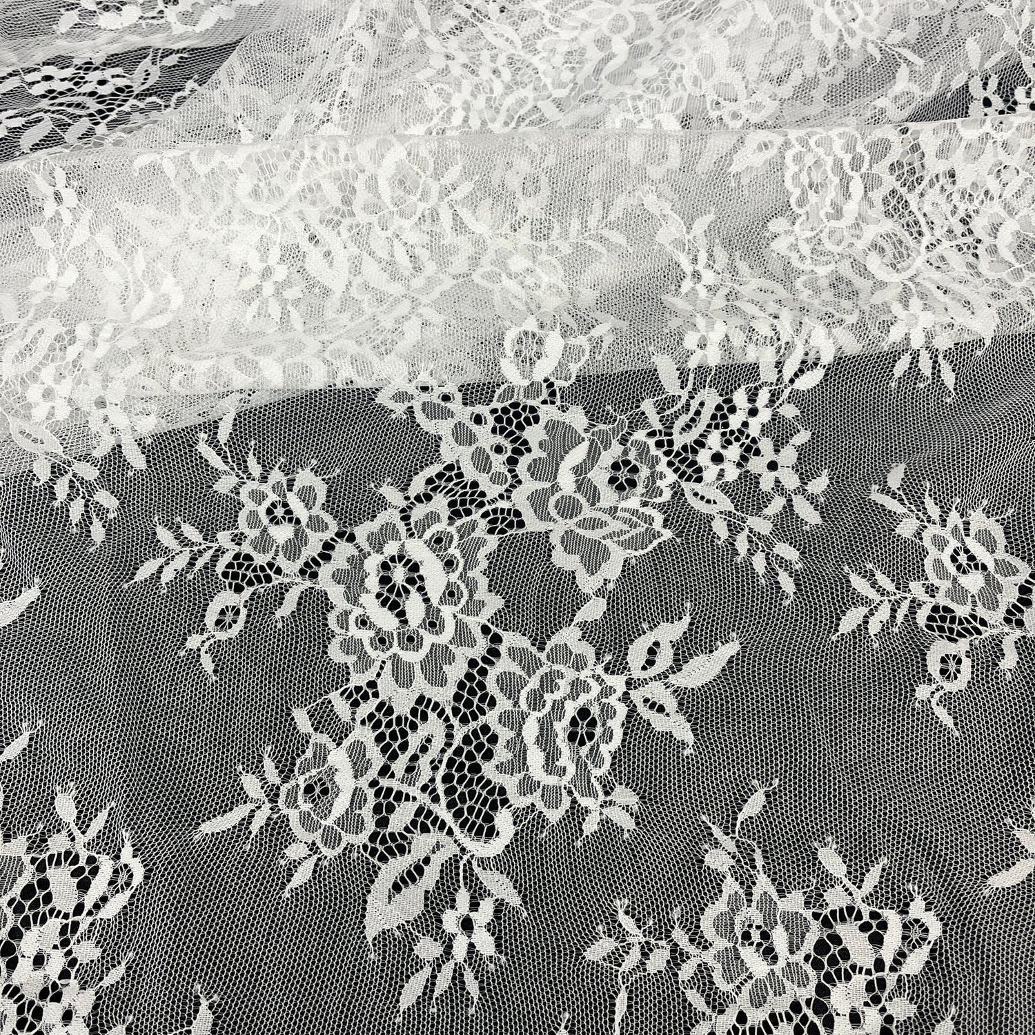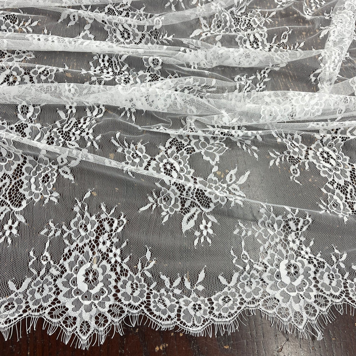 1 Yard Chantilly Embroidered Lace Fabric with Eyelash Scallop, 58" Wide French Alençon Lace for Bridal & Evening Dresses