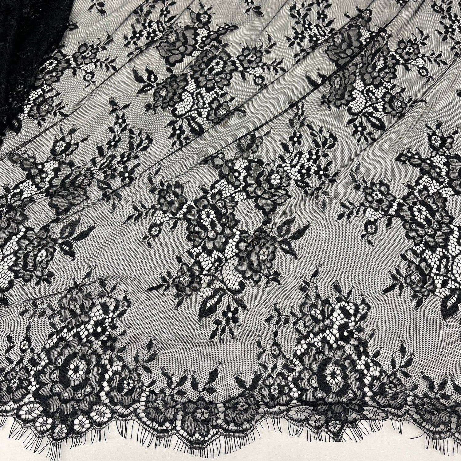 1 Yard Chantilly Embroidered Lace Fabric with Eyelash Scallop, 58" Wide French Alençon Lace for Bridal & Evening Dresses - Black is backordered and will ship as soon as it is back in stock.