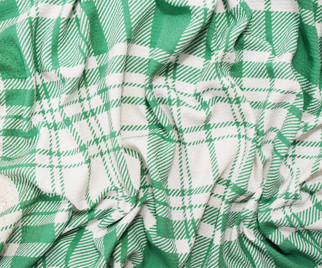 1 Yard Green White Polyester Spandex Plaid Liverpool Knit Fabric Stretchy 62 Inches
