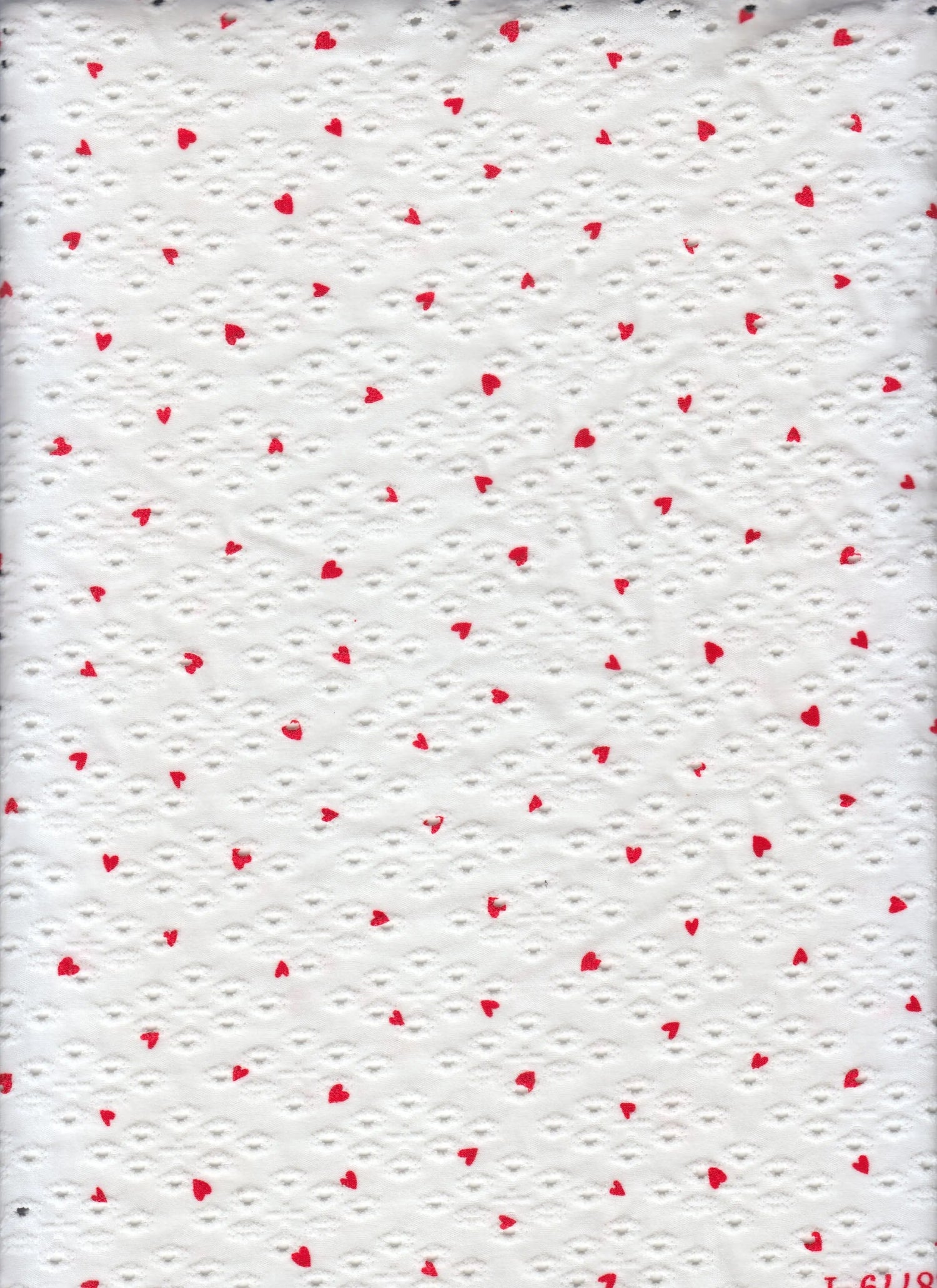 1 Yard Knit Jacquard Eyelet Heart Print Fabric Stretch Polyester Spandex 58/60 Inches Wide - IVORY/RED is backordered and will ship as soon as it is back in stock.