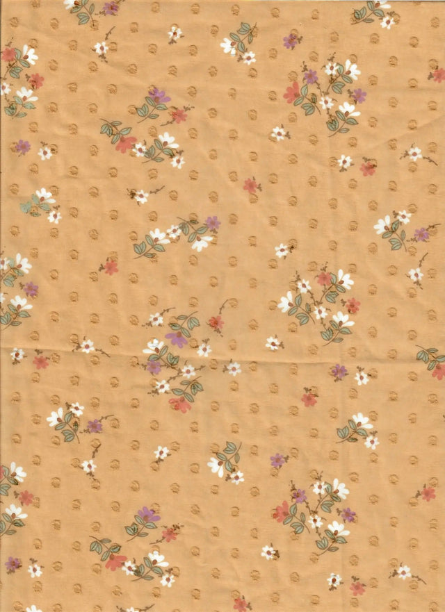 1 Yard Tan Polyester Swiss Dot Chiffon 57/58″ Wide Ditsy Floral Fabric