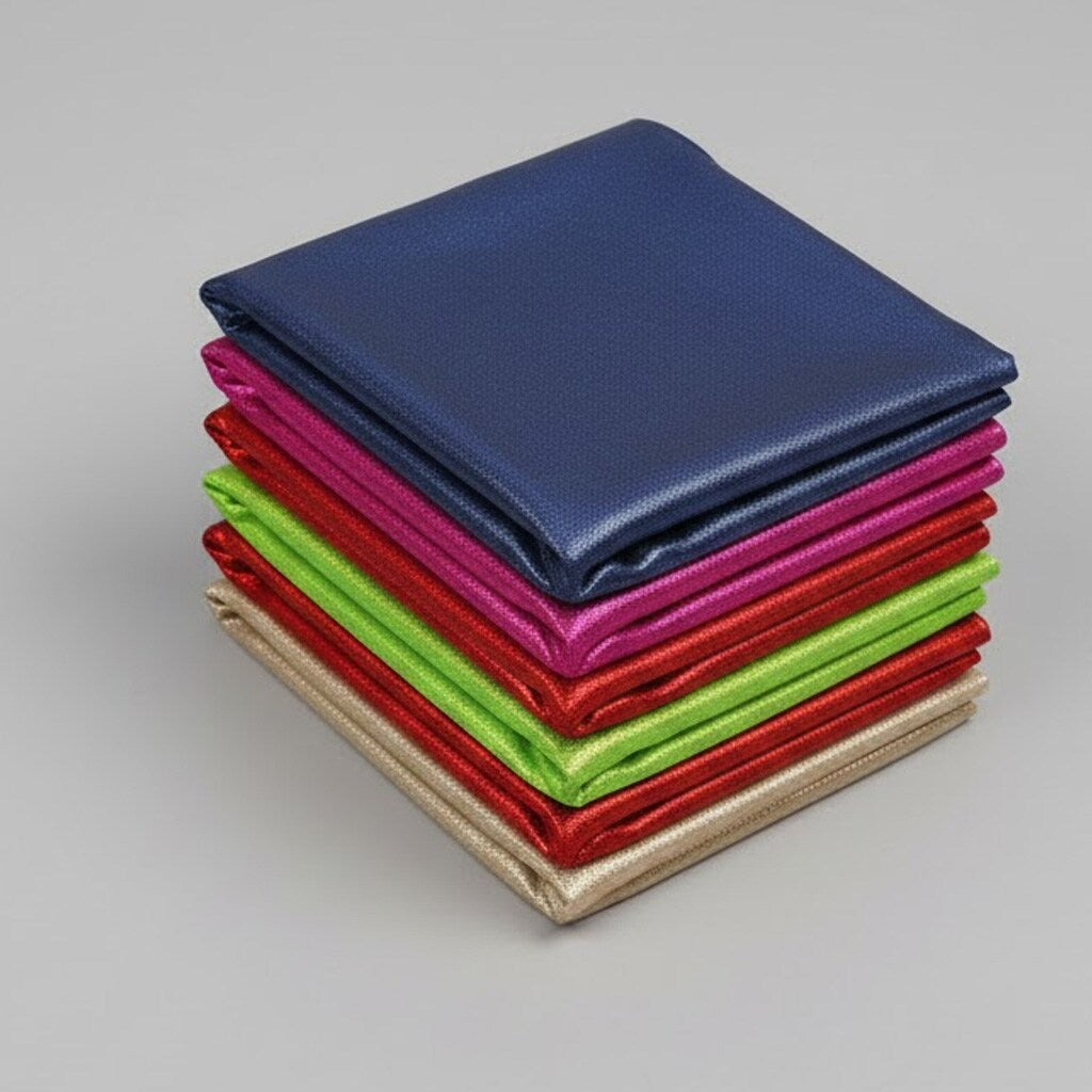 This metallic foil spandex fabric delivers dazzling sparkle, smooth stretch, and flexible comfort for dancewear, party costumes, and skatewear. The 80% nylon and 20% spandex blend provides durability while moving with the body, ensuring stylish performance for fitted garments. Its reflective foil finish, 200 GSM weight, and versatile design make it ideal for costumes, activewear, or any project that requires shine and mobility.