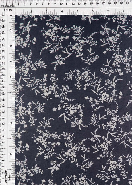 1 Yard Navy Chiffon Fabric 100% Polyester Floral Print, 57/58" Wide