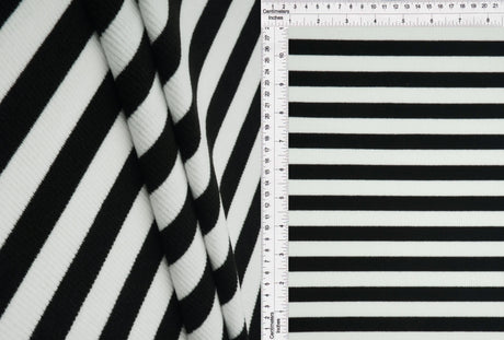 1 Yard 2x2 Cool Cotton Stripe Fleece Rib Knit Fabric, 50/52'' Wide Polyester Spandex Blend