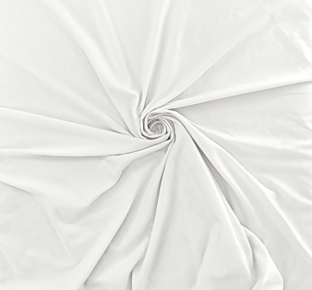 • Ultra soft white modal jersey knit fabric offers exceptional drape and comfort for high quality apparel pieces