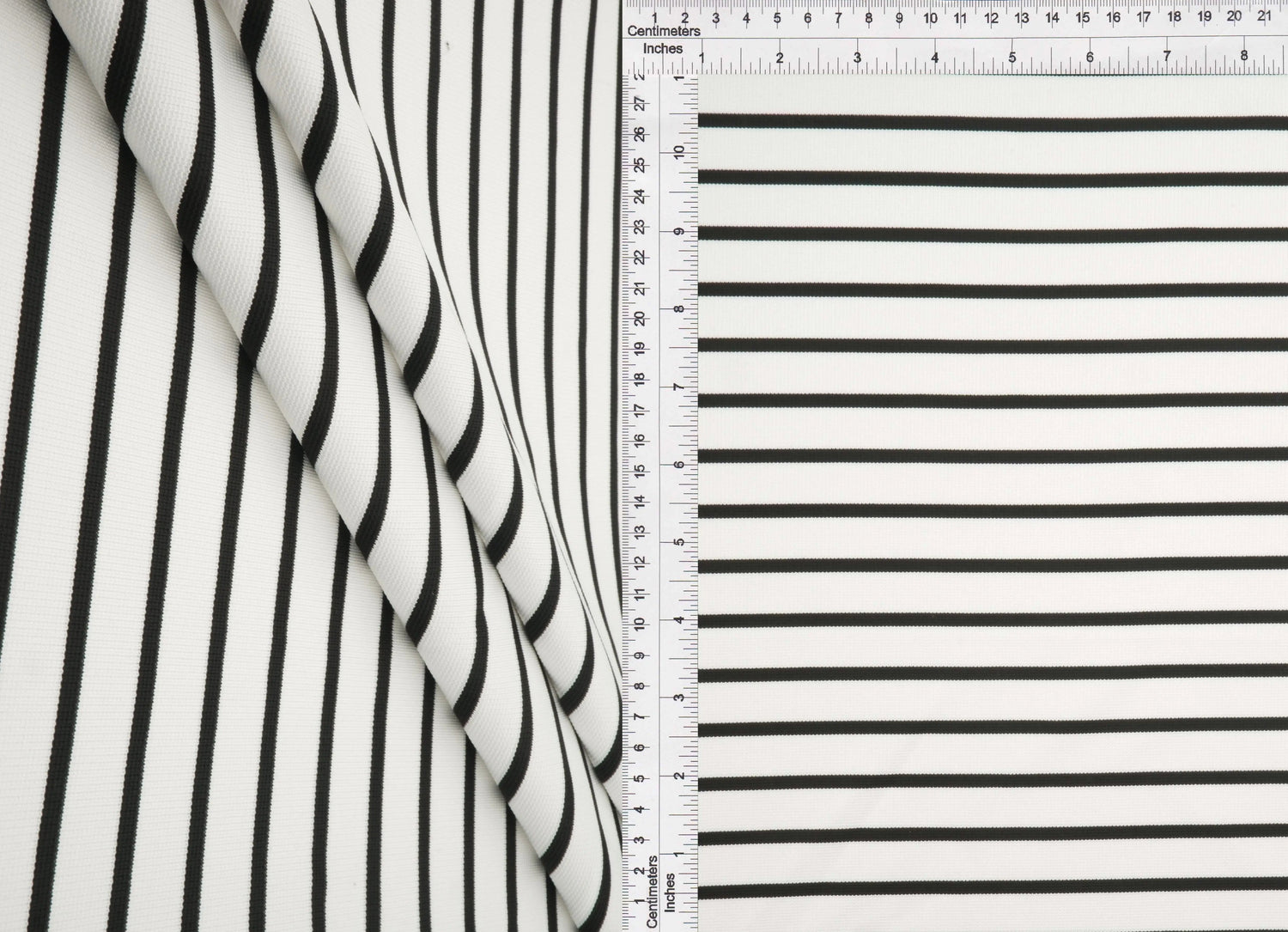 1 Yard Yarn Dye Stripe Ponte Fabric 275 GSM Polyester Spandex Blend 58/60" Width - BLACK/IVORY is backordered and will ship as soon as it is back in stock.