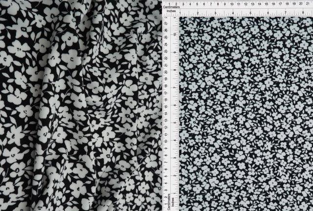 1 Yard Brushed DTY Floral Print Knit Fabric, 58/60'' Wide Polyester Spandex Blend - BLACK/WHITE is backordered and will ship as soon as it is back in stock.