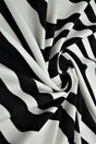 This black and ivory DTY brushed knit fabric features a bold zebra print, delivering a fierce and stylish look with a soft, stretchy feel. Made from 96% polyester and 4% spandex, this 170 GSM medium-weight fabric is breathable, smooth, and ideal for statement garments like dresses, tops, leggings, and fashion-forward apparel.