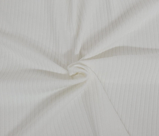 This 4x2 rib knit fabric is crafted from organic cotton with a touch of spandex, offering a soft, stretchy feel ideal for form fitting garments. The PFD (Prepared for Dyeing) off white finish makes it perfect for custom dyeing and garment personalization. Its defined rib texture provides excellent recovery and a snug fit, making it ideal for cuffs, neckbands, tanks, and fitted tops.