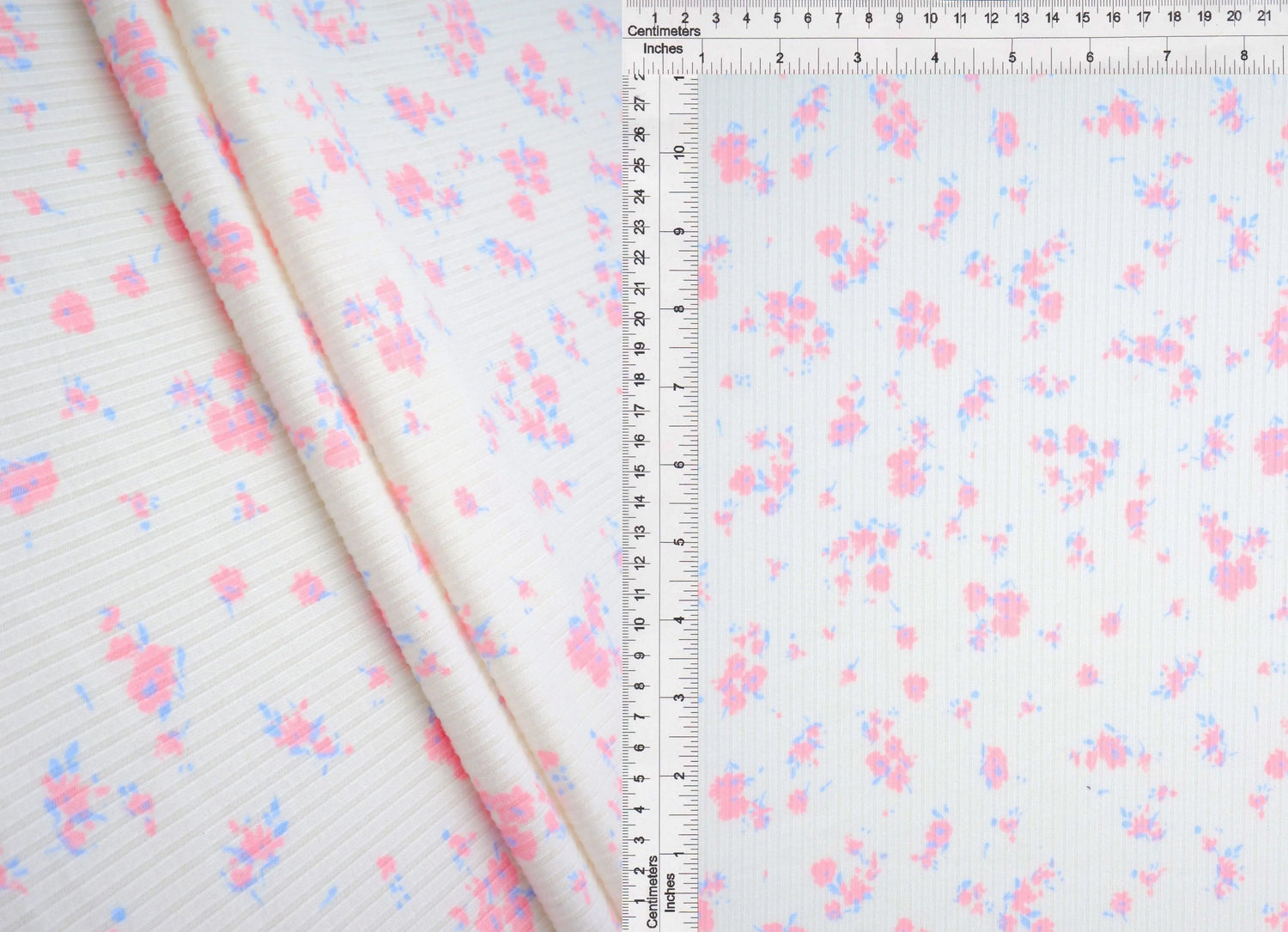 4×2 Yummy Rib Ditsy Print Knit 87% Polyester, 13% Spandex, 58/59'' Width Soft Stretch Fabric