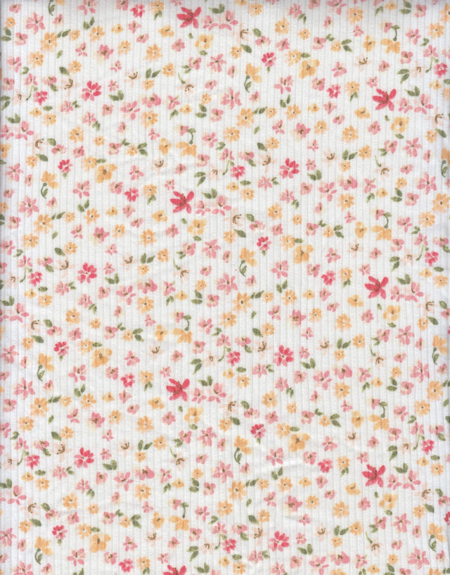4×2 Yummy Rib Ditsy Print Knit 97% Polyester, 3% Spandex, 58/60'' Width Soft Stretch Fabric for Apparel & More