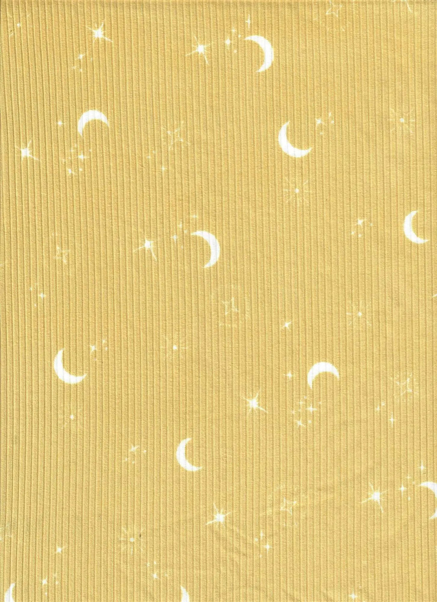 4×2 Yummy Rib Star and Moon Knit Stretch Fabric, 87% Polyester 13% Spandex, 58/60″ Wide