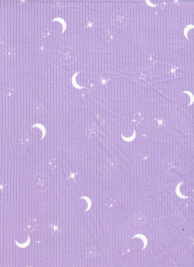 4×2 Yummy Rib Star and Moon Knit Stretch Fabric, 87% Polyester 13% Spandex, 58/60'' Wide