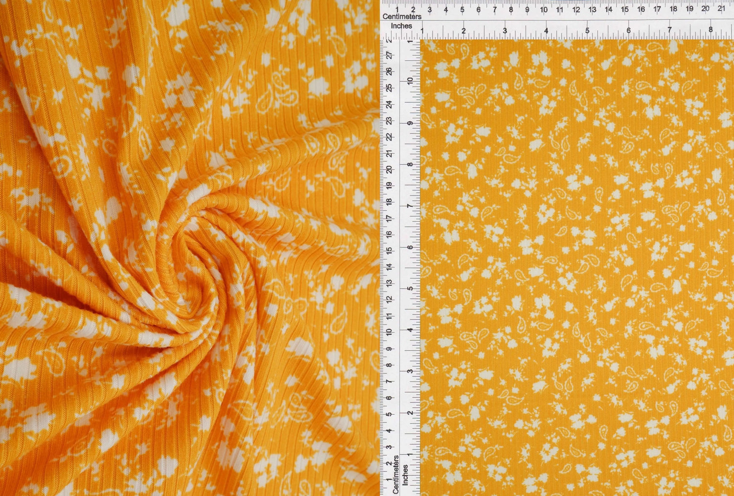 4×2 Yummy Rib Knit with Paisley Floral Print 58/60″ Wide Soft Stretch Fabric