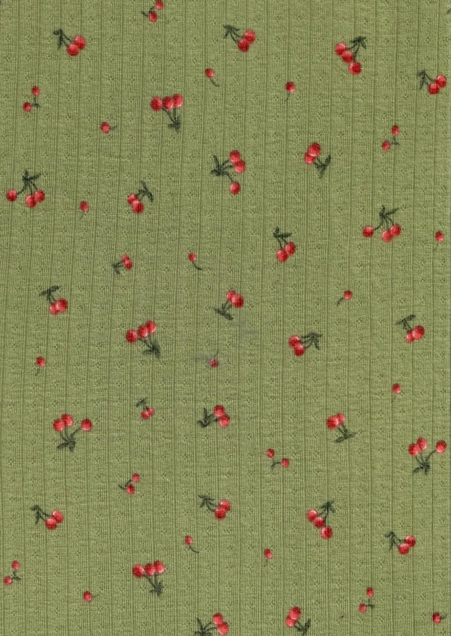 1 Yard Cotton Style Stretch Cherry Pointelle Knit Fabric 61/63 Inches Wide - SAGE is backordered and will ship as soon as it is back in stock.