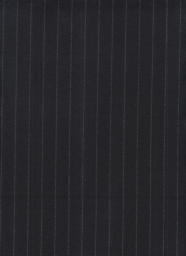 This techno crepe fabric features a sleek black and ivory pinstripe print, crafted from a durable blend of polyester and spandex. With its smooth texture, firm stretch, and structured drape, it’s perfect for trousers, blazers, skirts, and formal wear. Sold by the yard and measuring 58 to 60 inches wide.