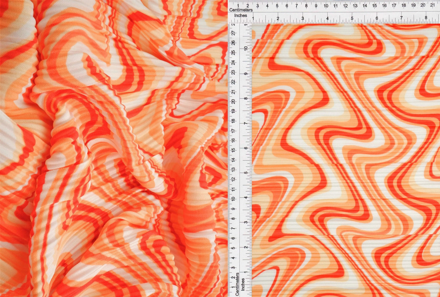 1 Yard Pleated Bodre Interlock Knit Fabric Geo Wave Print 57/58 Inches Wide - CORAL/BROWN is backordered and will ship as soon as it is back in stock.
