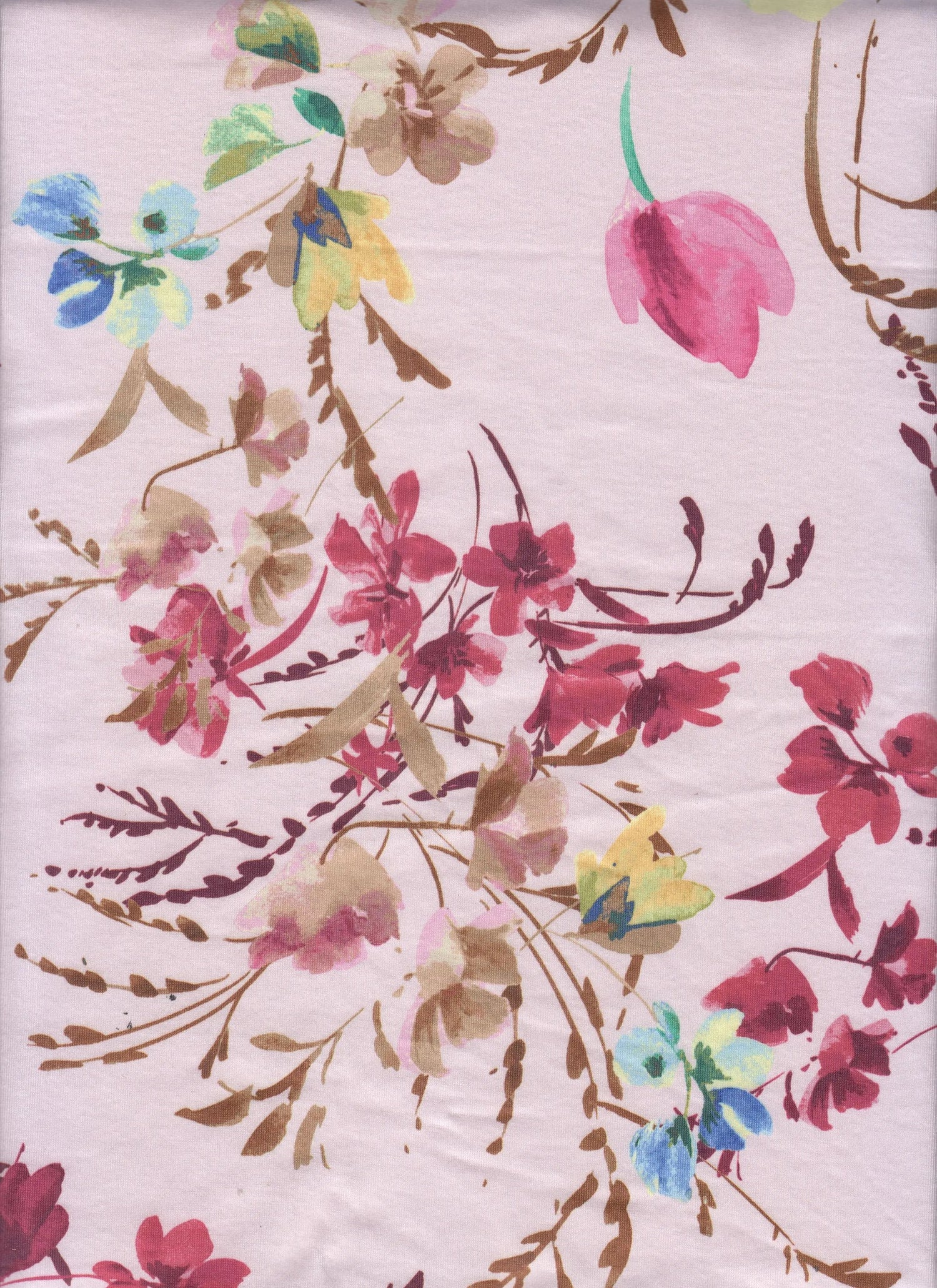 1 Yard Rose Light Digital Floral Brushed DTY Knit Fabric Soft Stretch 58/60" Wide