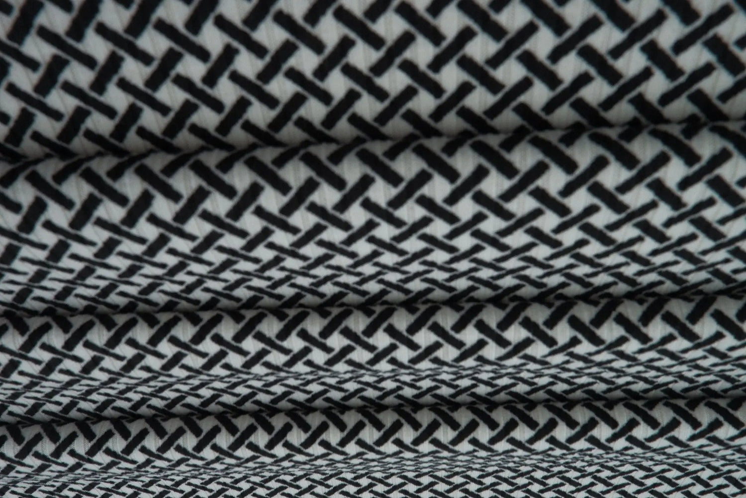 This 4x2 Yummy Rib Fabric showcases a bold retro geometric windowpane pattern on a soft, stretchy rib knit. Made of 87% polyester and 13% spandex with a 170 GSM weight, it’s perfect for trendy tops, bodycon dresses, casual sets, and modern apparel designs. Sold by the Yard