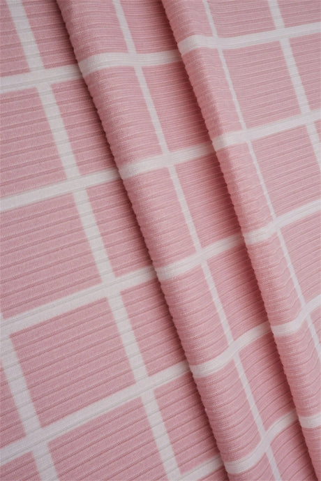 1 Yard Plaid Knit Jacquard Fabric 240 GSM, 58/60? Wide Polyester Rayon Spandex Blend