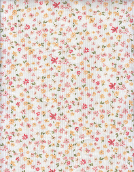 8×3 Yummy Rib Floral Print Fabric Soft Stretch Knit, 87% Polyester 13% Spandex & 58/60'' Wide