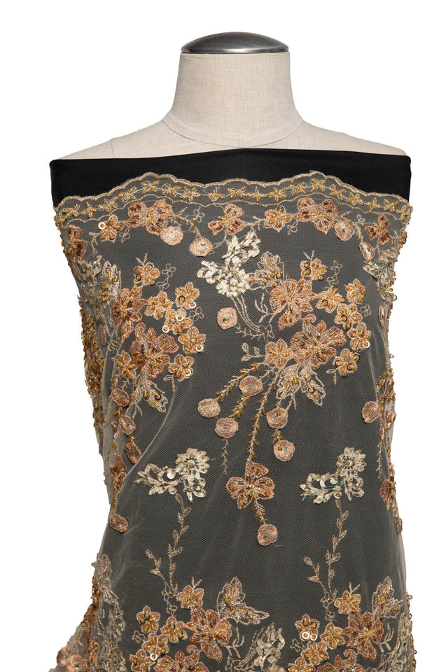 • Features 3D floral embroidery and applique