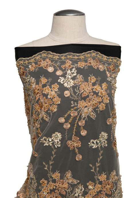 1 Yard Elegant Lace Tulle Fabric with Metallic Embroidery & Sequins, 100% Polyester, 50/52" Wide