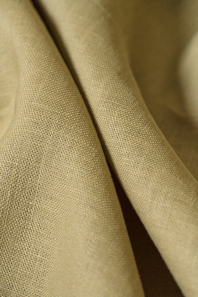 1 Yard Khaki Pure Linen Fabric, Stone Washed 5.5 oz Midweight 54 Inches Wide