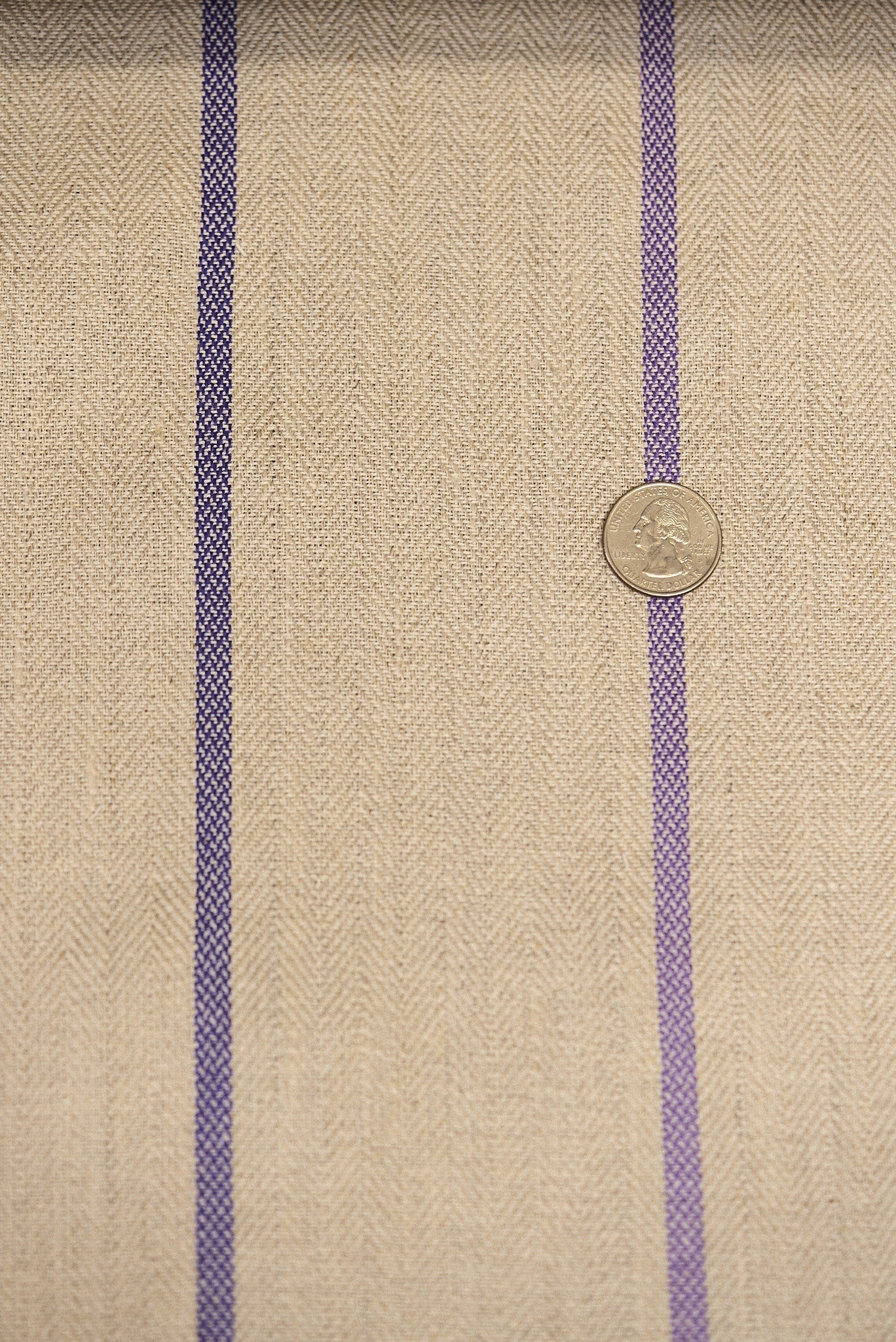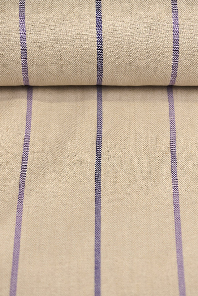 Enhance your creations with our Linen Novelty Herringbone Yarn Dyed Stripe Fabric in Grape color. This midweight fabric features a subtle striped pattern woven into a classic herringbone weave, offering a refined and timeless aesthetic.