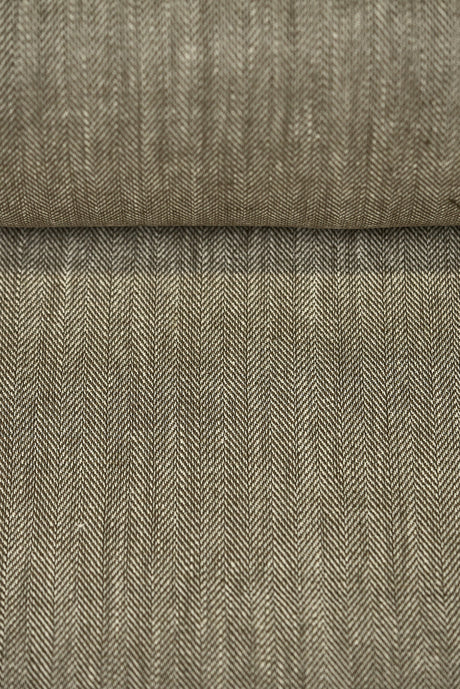 1 Yard Cocoa Linen Novelty Herringbone Yarn-Dyed Fabric Midweight 54 Inch Width
