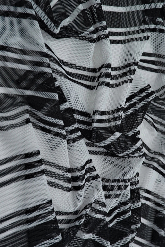 1 Yard Polyester Spandex 80 GSM Mesh Fabric Horizontal Stripe Print Lightweight Stretch 54" Width - IVORY/BLK is backordered and will ship as soon as it is back in stock.