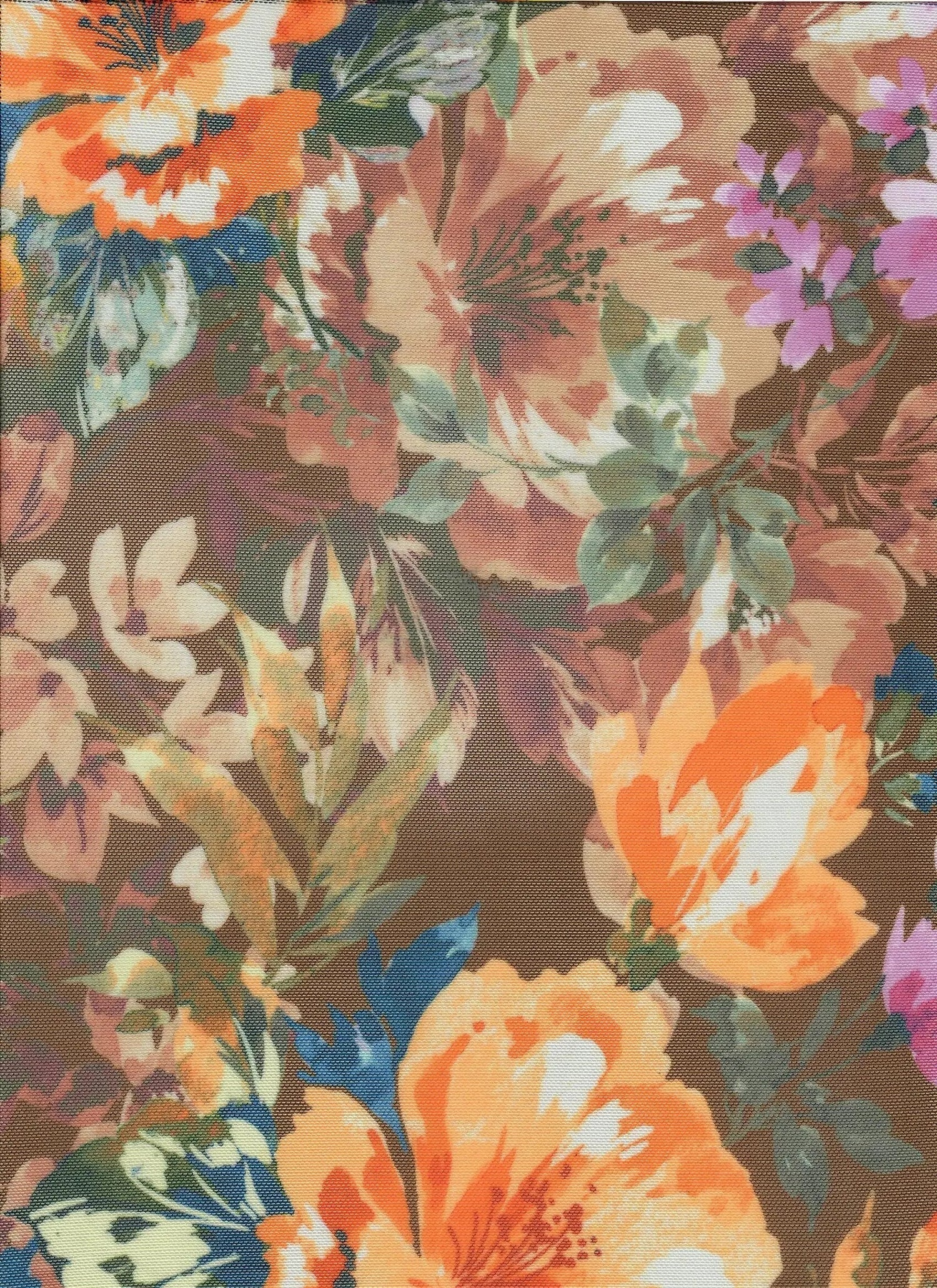 Floral Digital Mesh Fabric Lightweight Stretch Sheer, 54” Wide Polyester Spandex - BROWN is backordered and will ship as soon as it is back in stock.