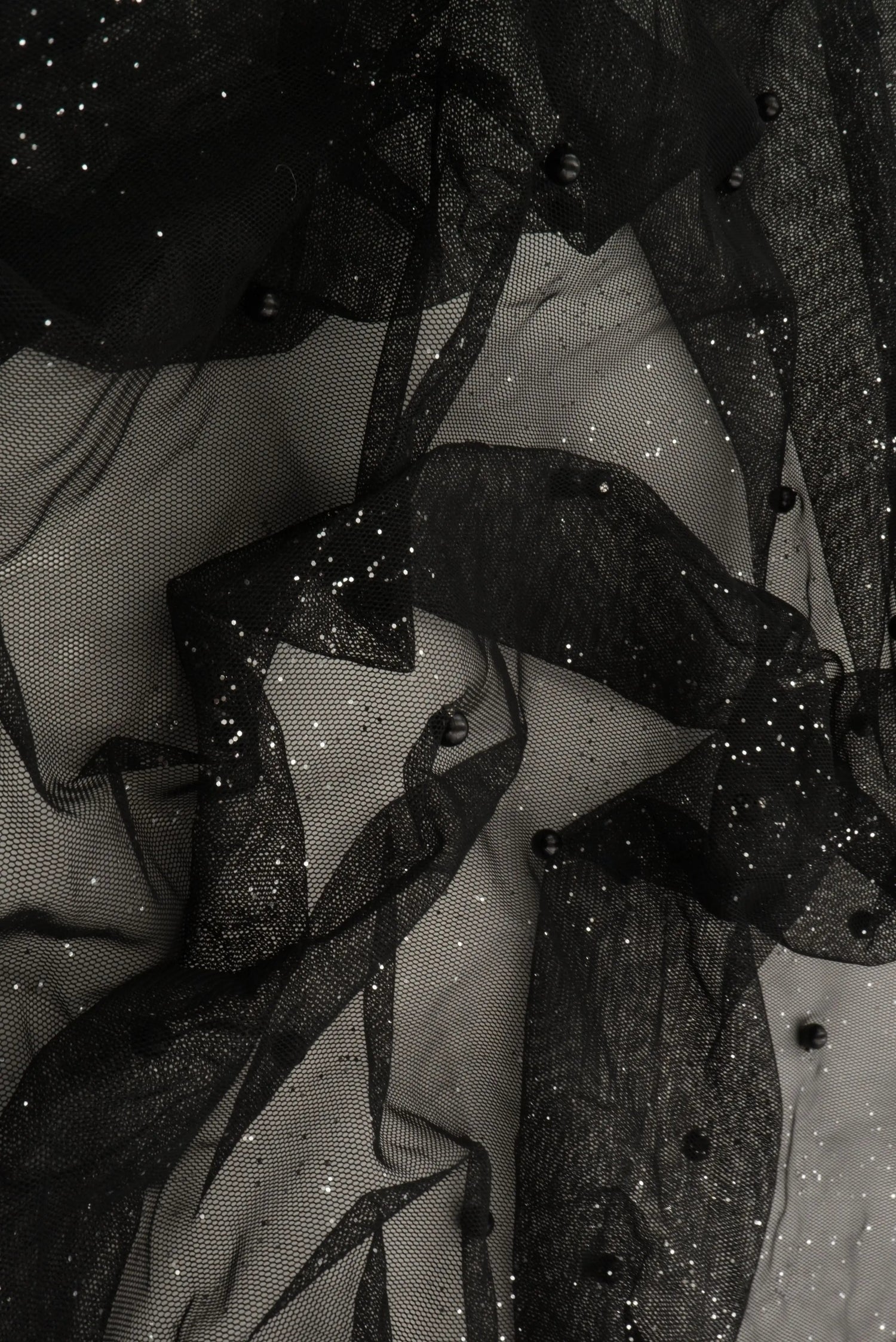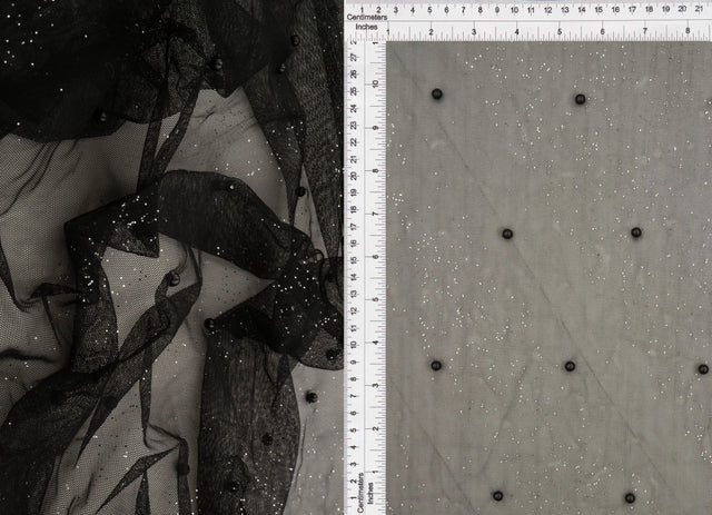1 Yard Black Mesh Sequins Embroidery Fabric, Polyester Spandex Blend