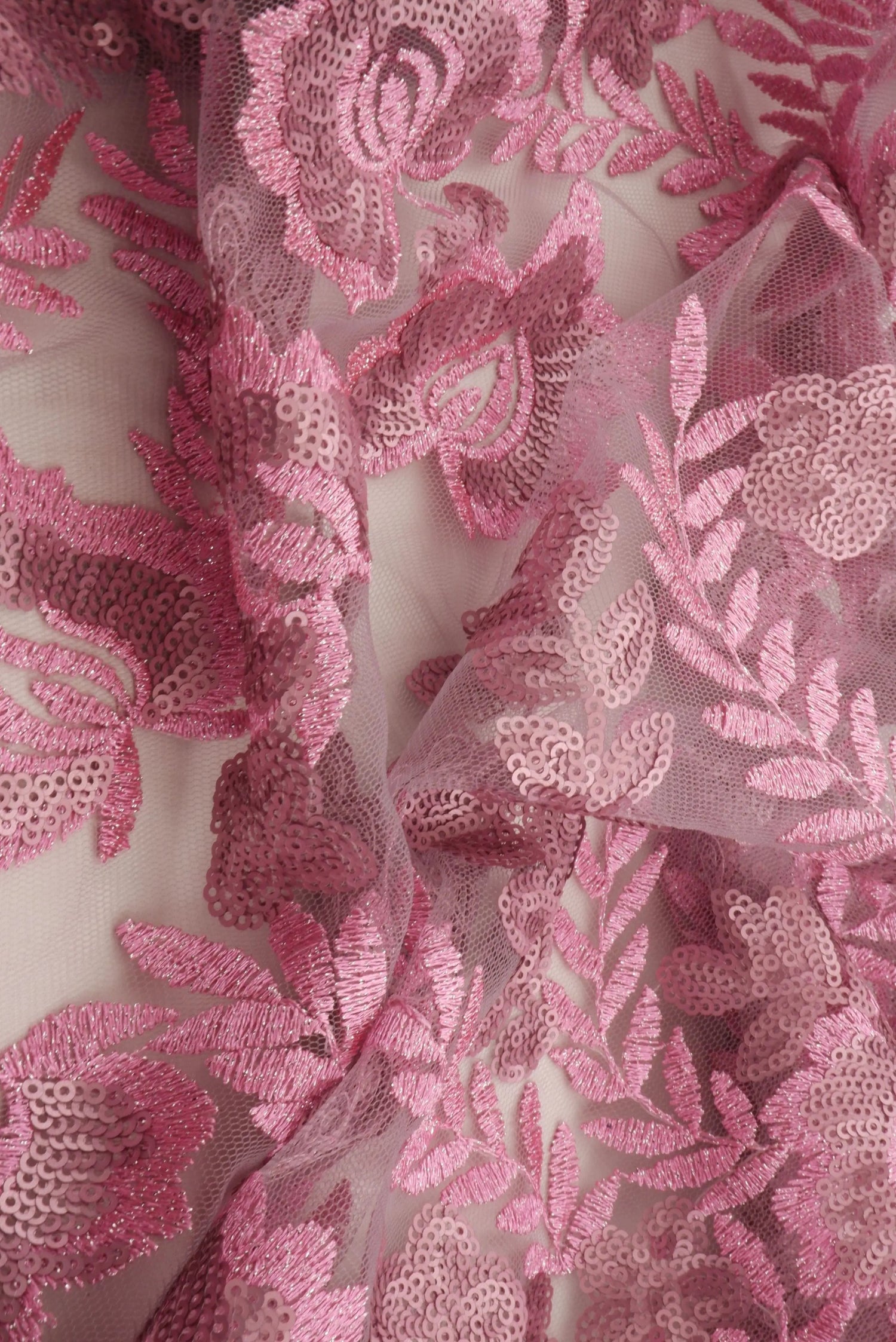 1 Yard Mesh Sequins Embroidery Fabric, Polyester Spandex Blend