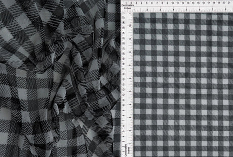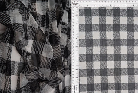 1 Yard Polyester Spandex 80 GSM Mesh Fabric Checkered Plaid Gingham Print Lightweight 54" Width