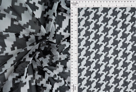 1 Yard Polyester Spandex 80 GSM Mesh Fabric Houndstooth Print Lightweight Stretch 54" Width