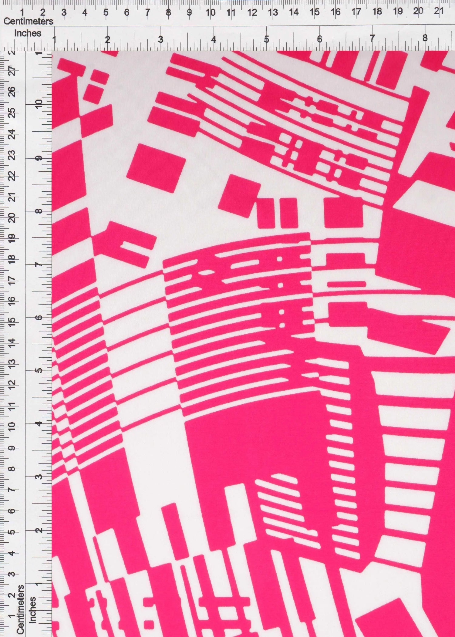 Lightweight and smooth geometric DTY knit stretch fabric made of 96% polyester and 4% spandex. With a width of 58/60 inches and a soft 190 GSM, it’s perfect for trendy dresses, tops, skirts, and creative sewing projects. Sold by the yard for your convenience.